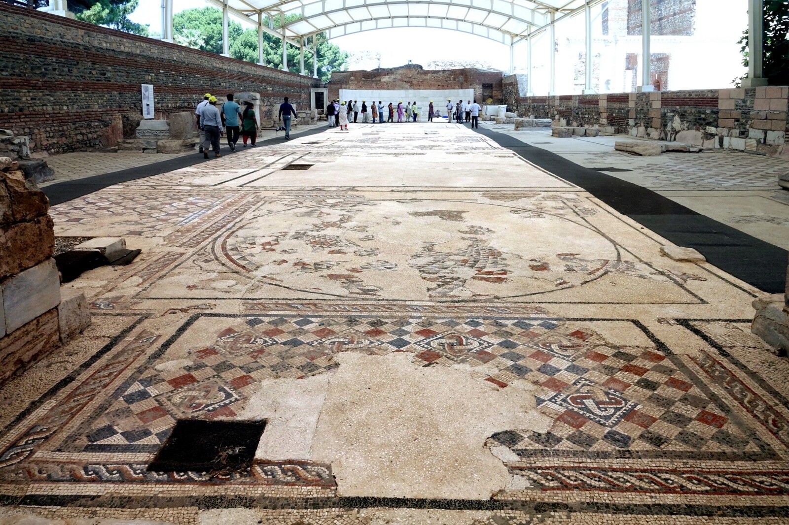 Elle a connu plusieurs phases de construction et elle est restée utilisée jusqu'à la destruction de la ville par les Perses en 616. Sa découverte et notamment les superbes mosaïques de son sol par la mission archéologique américaine Harvard-Cornell en 1962 a permis de réévaluer l'importance des communautés juives de sa diaspora en général et d'Asie Mineure en particulier.